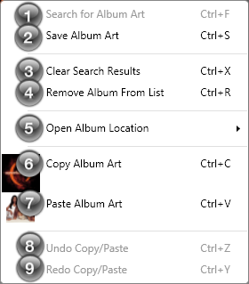 Ctrl+V Paste Album Art Pastes the image in the clipboard into the album artwork results as an album artwork option to be saved.