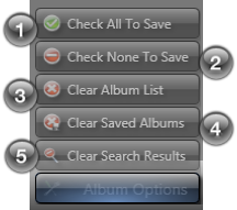 Alt+L Album Options Shows a menu for interacting with the album list with the following options: Check All To Save, Check None To Save, Clear Album List, and Clear Saved Albums.