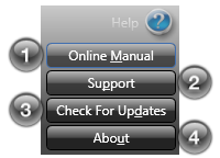 Alt+H Help Shows a menu with the following options: Online Manual, Support, Check For Updates, and About.