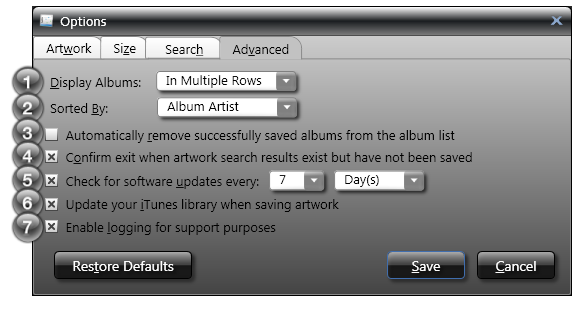Overview of the Options - Artwork Window: