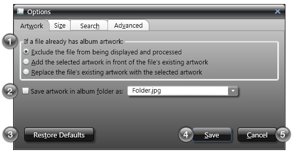 Album Artwork Shows the currently selected album artwork that is selected to be saved into the album file(s).